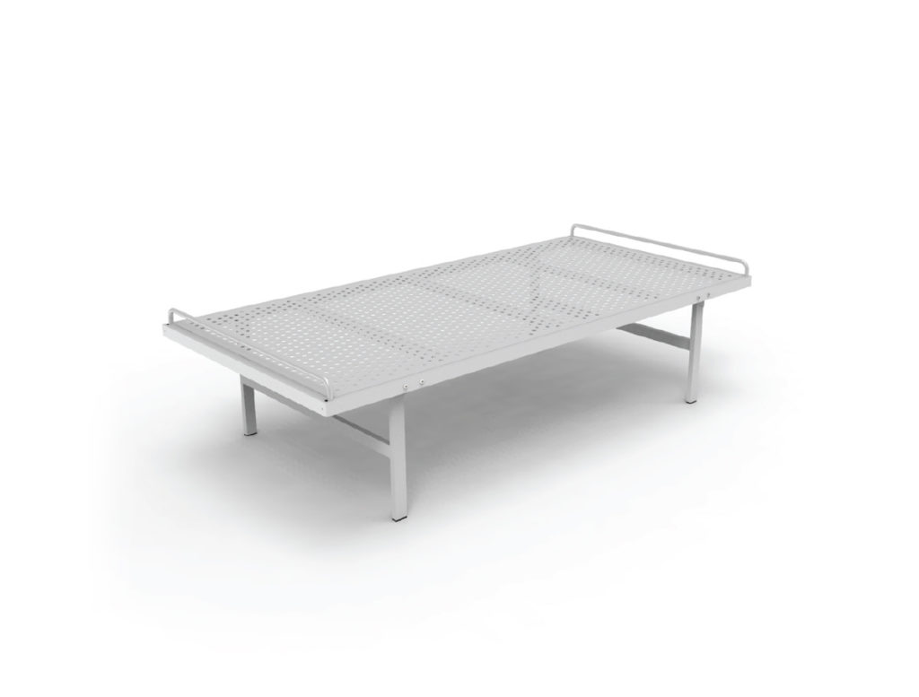 Fabricadas íntegramente en metal (tubo metálico y chapa perforada) son altamente resistentes, de rápido armado y fácil transporte.