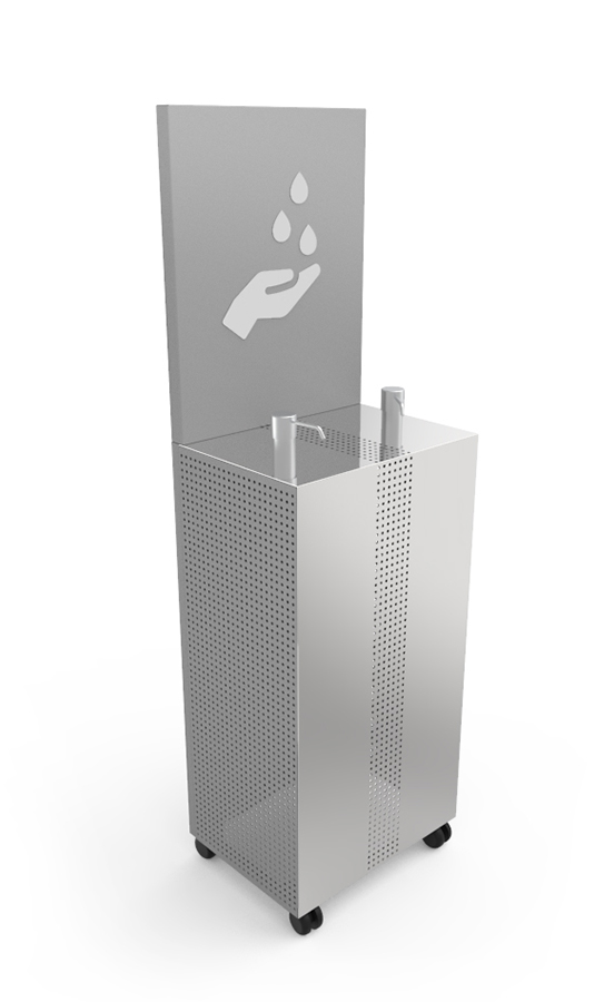 Creamos una estación sanitizante: una expendedora de alcohol en gel para higienizar y desinfectar al usuario.