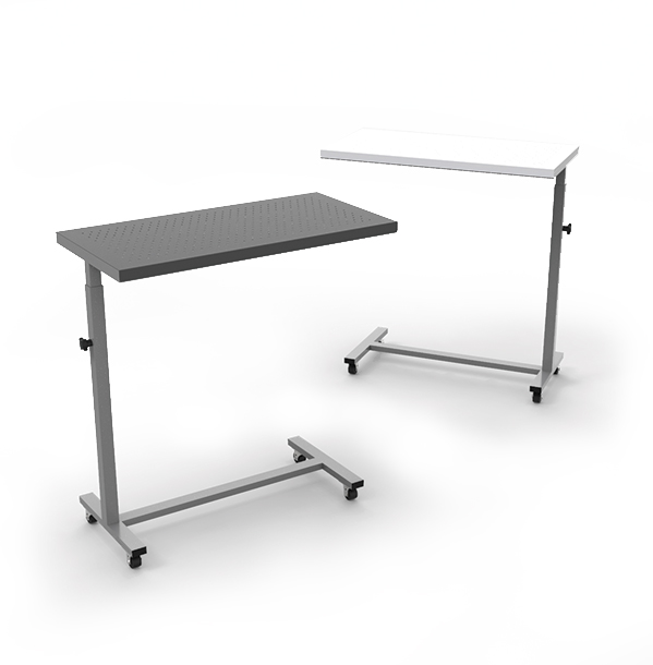 Mesa auxiliar para camas esterilizable, movil y con altura regulable.