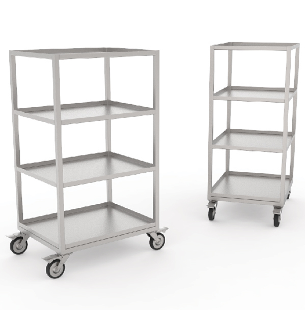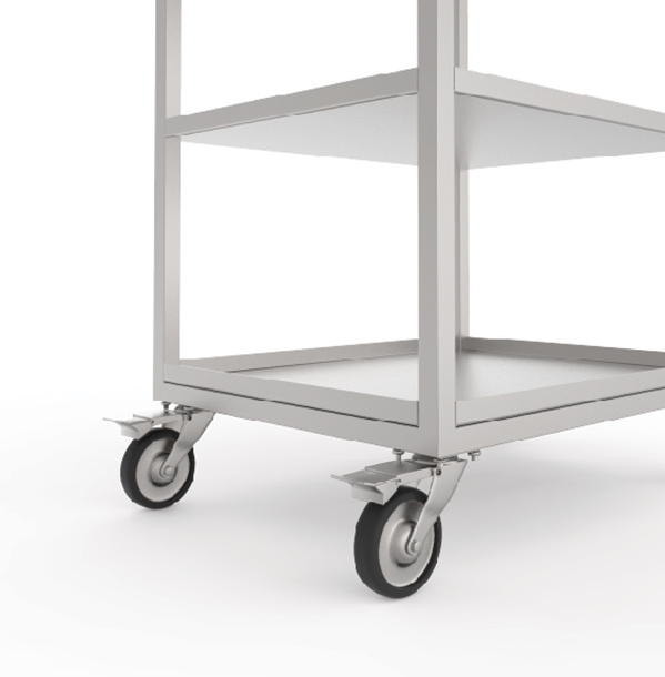 Mesa móvil esterilizable con estantes, para transportar insumos y adaptar a distintos ambientes