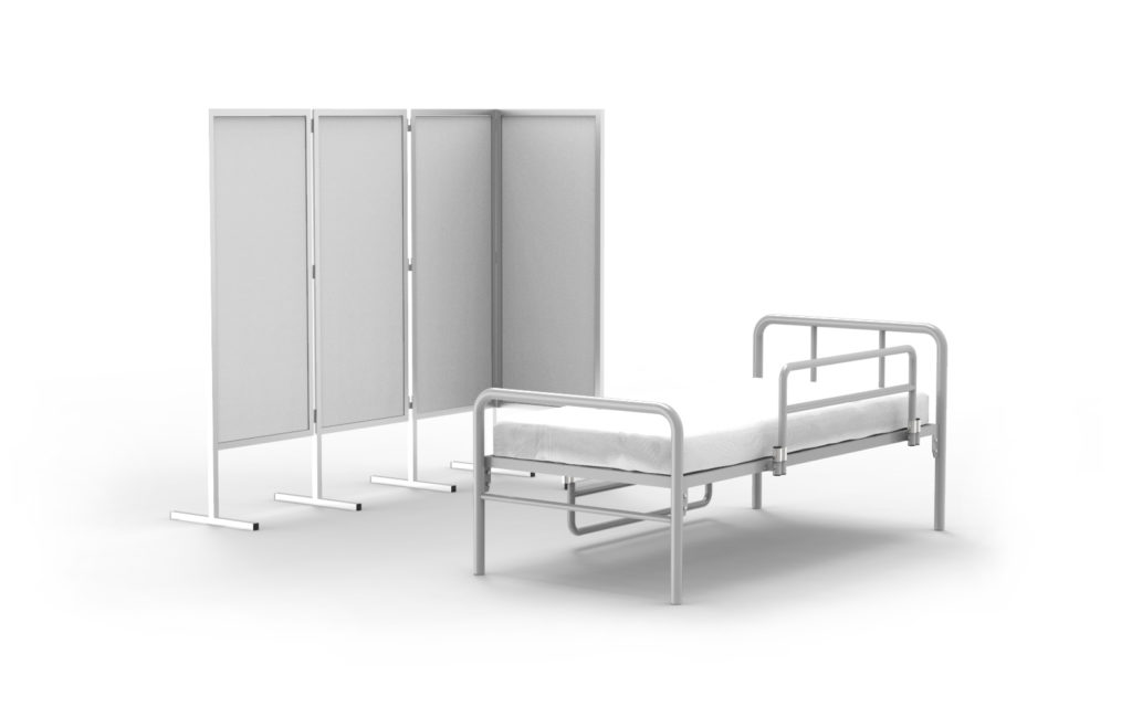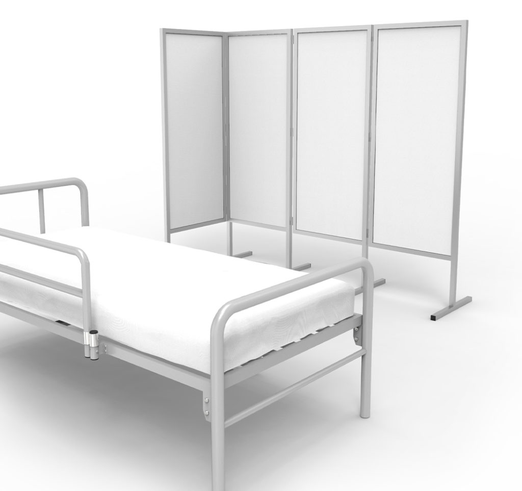Así como diseñamos biombos metálicos para armar rápidamente una zona de atención o inspección previa, también diseñamos biombos mas económicos fabricados en acero y lona de PVC. También puede fabricarse en acero inoxidable.